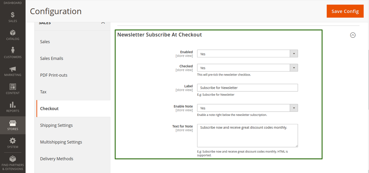 </config>We will add this newsletter subscriber field by adding UI Component (Magento\Checkout\Block\Onepage\layoutProcessors) and modifying layout file (checkout_index_index.xml).