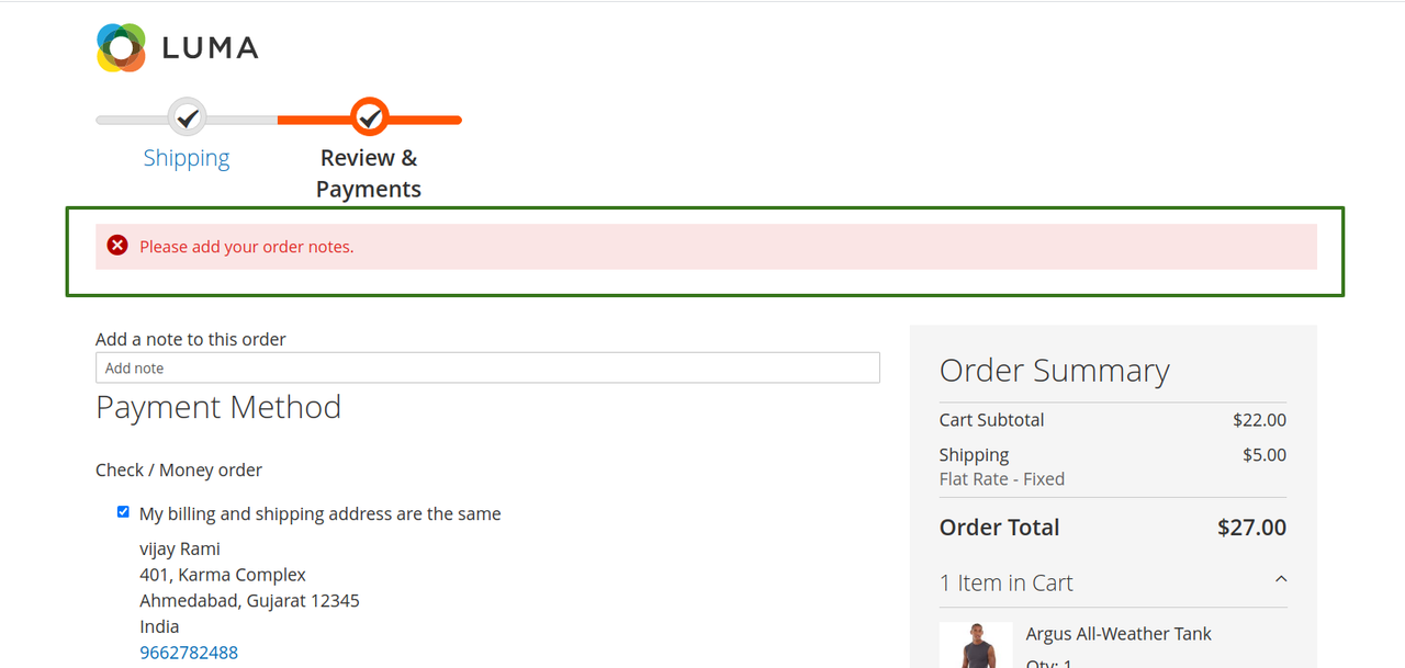 );After adding above all file code, you can check that your new text field (simple_note) will be display in checkout page.